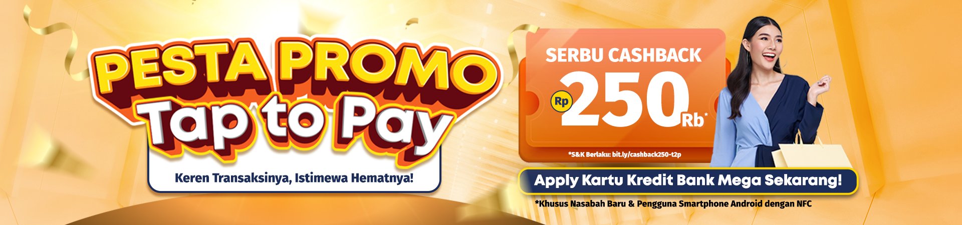 Apa syarat agar promo Tap to Pay Cashback dengan Tap to Pay dapat dinikmati oleh pengguna kartu kredit Bank Mega? |
