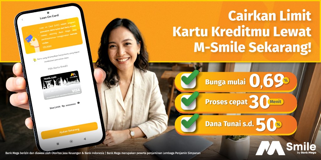 Apakah Anda tahu bahwa sisa limit kartu kredit Anda dapat menjadi sumber dana yang cepat dan mudah untuk mewujudkan rencana atau memenuhi kebutuhan mendesak? Dengan layanan Loan on Card di aplikasi M-Smile, dana dari sisa limit kartu kredit Anda dapat langsung dicairkan lho. Tidak perlu repot mengurus pinjaman konvensional atau prosedur yang rumit – cukup dengan beberapa langkah sederhana, dana akan langsung masuk ke dalam rekening Anda