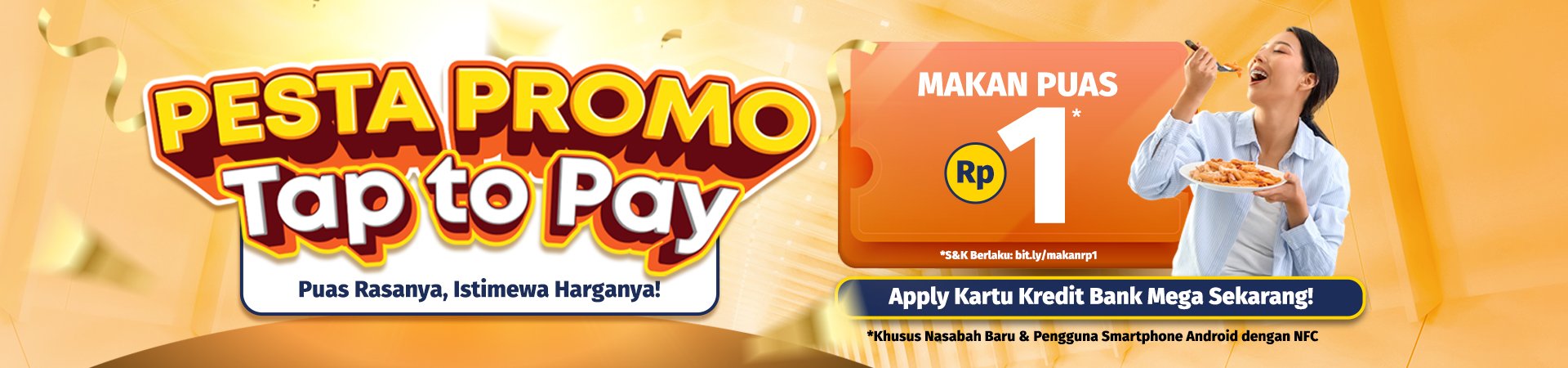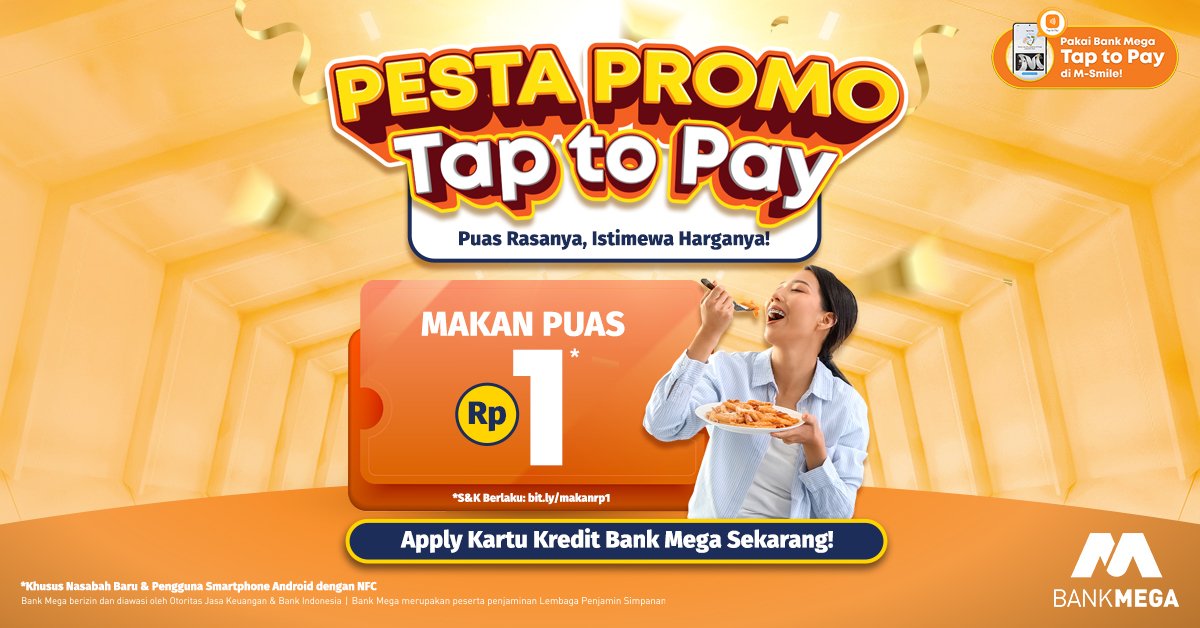 Apa syarat agar Makan Rp1 dengan Tap to Pay dapat dinikmati oleh pengguna kartu kredit Bank Mega? |