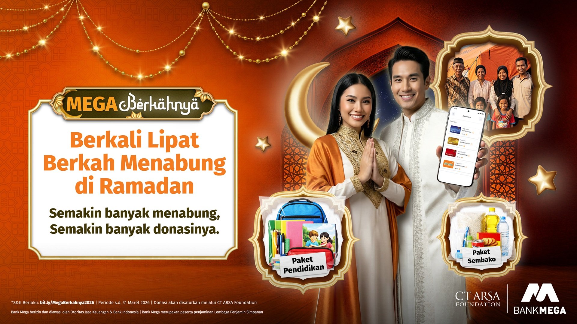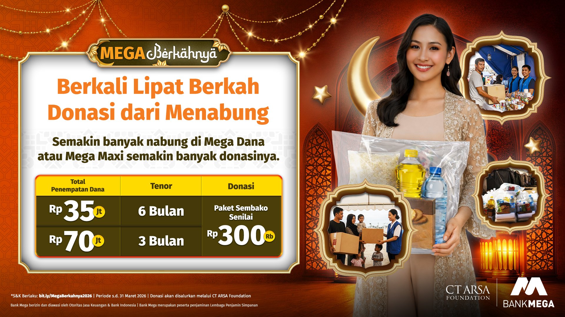 Program Ramadan dari Bank Mega yang mengajak Anda berbagi kebaikan melalui aktivitas finansial sehari-hari. Dengan aktif bertransaksi dan menabung sebanyak-banyaknya, semakin banyak jumlah paket donasi yang akan disalurkan melalui CT ARSA Foundation untuk membantu korban bencana di Aceh dan Sumatra.