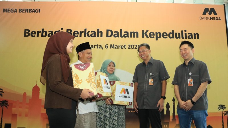PT Bank Mega Tbk membagikan hampir 15 ribu paket sembako melalui program Mega Berbagi bertajuk “Berbagi Berkah Dalam Kepedulian” kepada masyarakat yang membutuhkan di lingkungan jaringan Kantor Bank Mega di seluruh Indonesia. Penyerahan bantuan dilakukan secara simbolis oleh jajaran Direksi Bank Mega kepada perwakilan pengurus berbagai yayasan dan masjid sebagai penerima bantuan di Menara Bank Mega, Jakarta (6/3). Kegiatan ini telah rutin dilaksanakan sejak tahun 1996.